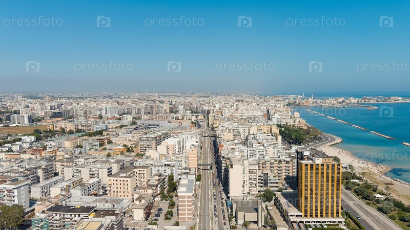 Бари, Италия.Центральная часть города днем.Железная дорога на улице Анастасио Баллестреро.Лето.Бари - портовый город на Адриатическом побережье, вид с воздуха