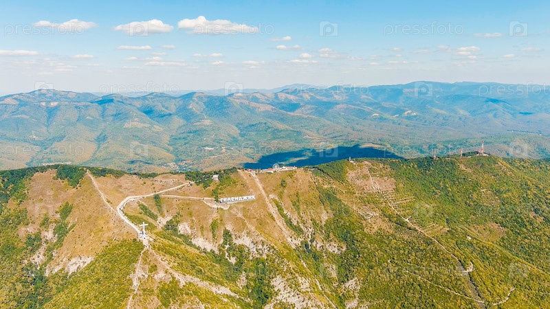 Геленджик, Россия. Парк Маркота. Крест поклонения. Перевод текста на склоне на английский язык - Геленжик, Вид с воздуха
