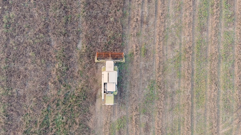 Поля собрания с комбинезоном в вечернее солнцестояние, Aerial View