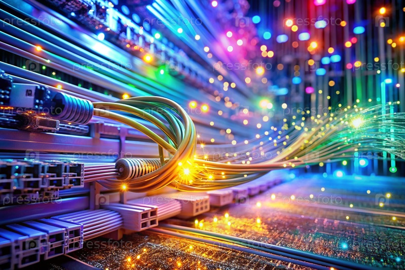 Высокотехнологичный материал. Закрытие линий и проводов цветными огнями, создание абстрактного дизайна. Концепция коммуникации, интернета и будущих технологий