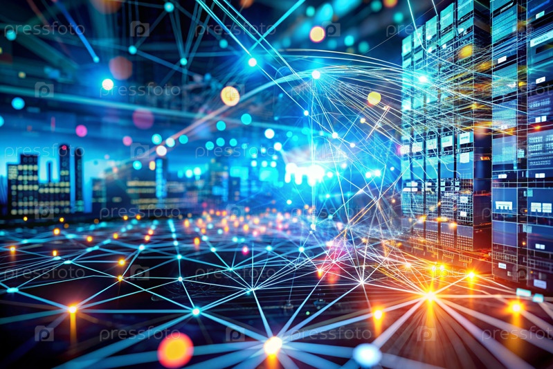 Высокотехнологичный материал. Закрытие линий и проводов цветными огнями, создание абстрактного дизайна. Концепция коммуникации, интернета и будущих технологий