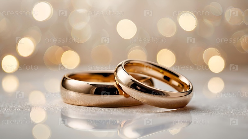 Золотые обручальные кольца на белом фоне со стороной