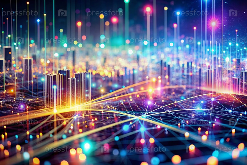 Высокотехнологичный материал. Закрытие линий и проводов цветными огнями, создание абстрактного дизайна. Концепция коммуникации, интернета и будущих технологий