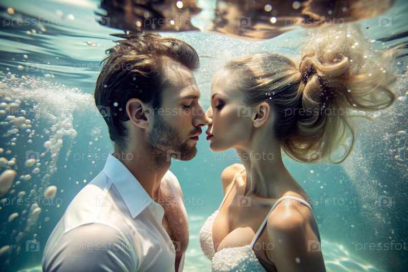 Красивые влюбленные. мужчина и женщина под водой на глубине. романтические отношения. необычное свидание