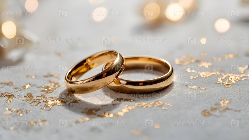 Золотые обручальные кольца на белом фоне со стороной