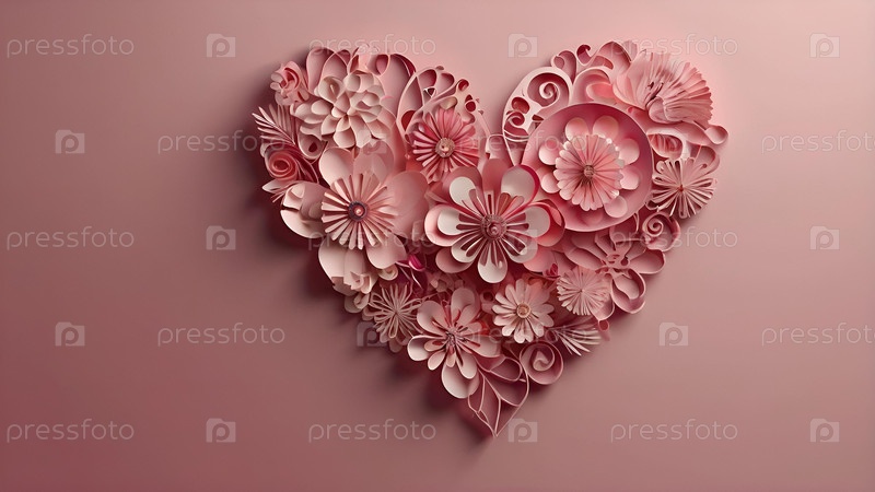 Концепция Дня святого Валентина с розовым сердцем, изображающим Любовь. Стильный дизайн цветов на бумаге. Копировальное пространство