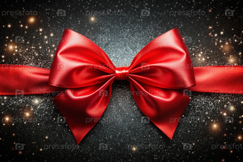 Элегантный лук из атласной красной ленты на блестящем черном фоне