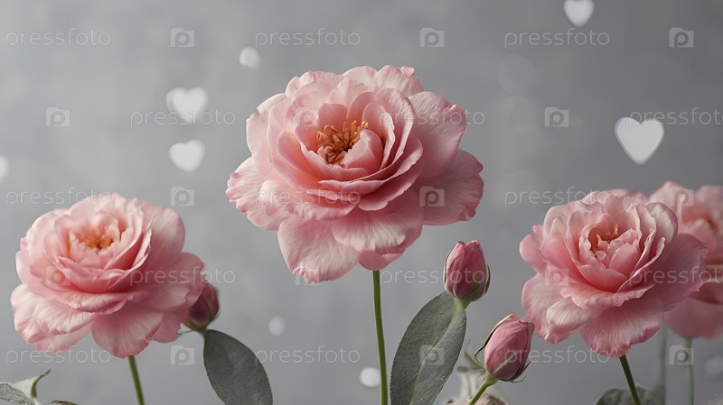 Минимализм. Красивый светло-розовый цветок на сером фоне. Концепция Дня святого Валентина, Дня матери и женского дня. Копия текстового пробела