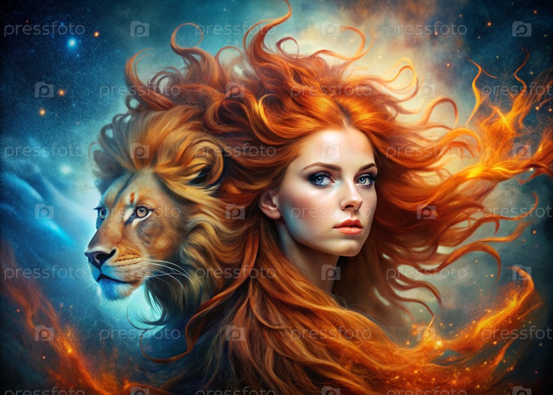 Знаки Зодиака. Астрологический прогноз. Прогнозы. Красивая девушка в знаке Льва. Понятие астрологии и гороскопа. Серия изображений 12 знаков зодиака