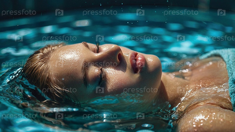 Близко. красивая молодая женщина в бирюзовом бассейне. концепция здорового образа жизни, отдых, расслабление, туризм, косметические спа-процедуры в курорте красота, гордость