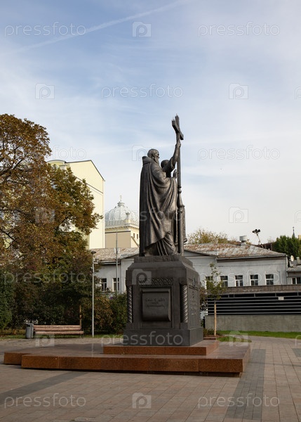 Памятник Методию и Кириллу в Москве возле парка Зарядье летом