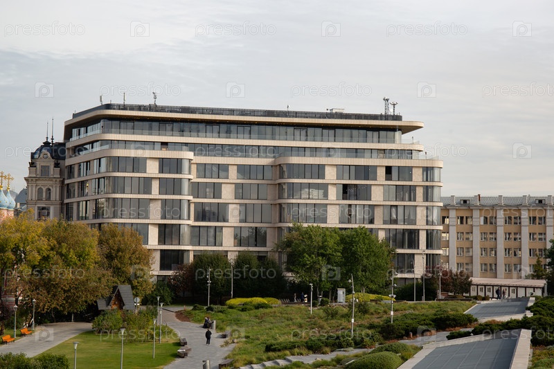 Прекрасный вид на старое здание в парке Зарядье в Москве летом