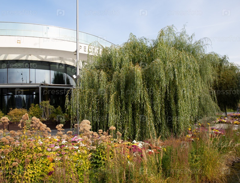 Красивое цветочное поле в парке Зарядье в Москве летом