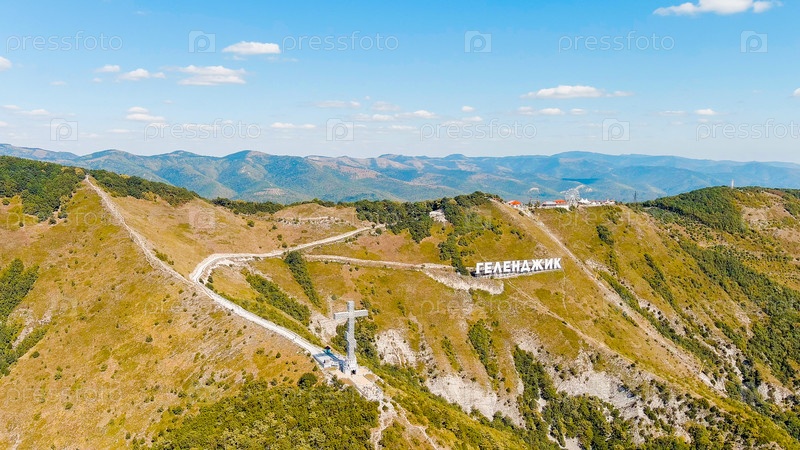 Геленджик, Россия. Парк Маркота. Крест поклонения. Перевод текста на склоне на английский язык - Геленжик, Вид с воздуха