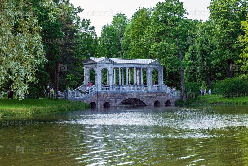 Пушкин, Санкт-Петербург, Россия - 14 июня 2025 г. Мраморный мост в парке Екатерины