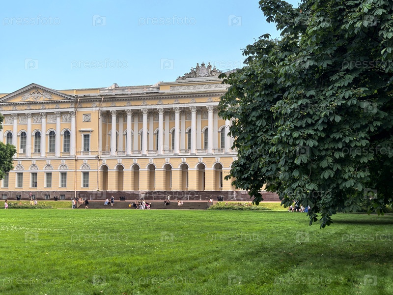 Санкт-Петербург, Россия - 12 июля 2025 года.Михайловский дворец летом с отдыхающими