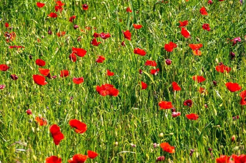 Поле маков, цветущих