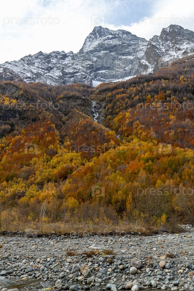 Альпийский пейзаж ущелья Домбай-Ульген в заповеднике Теберда,