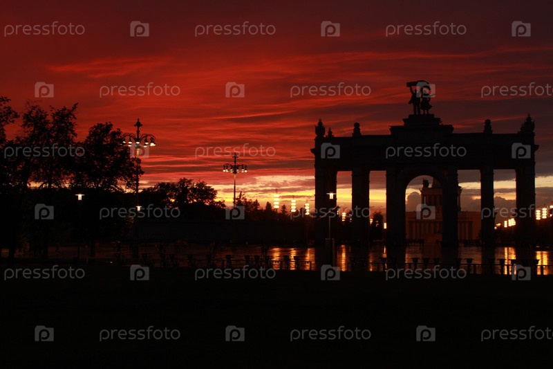 Симфония Заката Солнца ВДНХ: арка в объятиях красного неба
