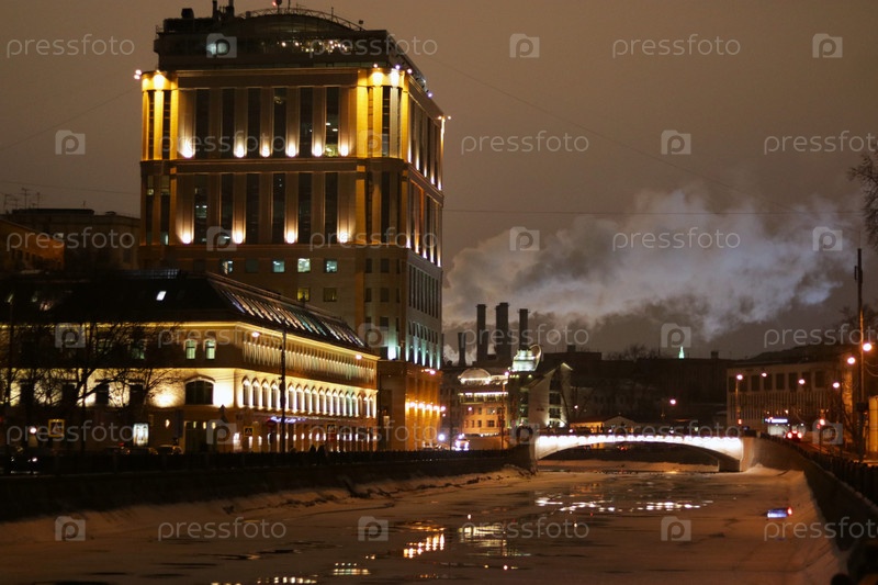 Московский ночной ритм: Свет огней над замерзшей рекой