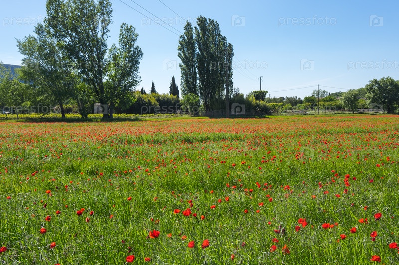 Поле маков, цветущих