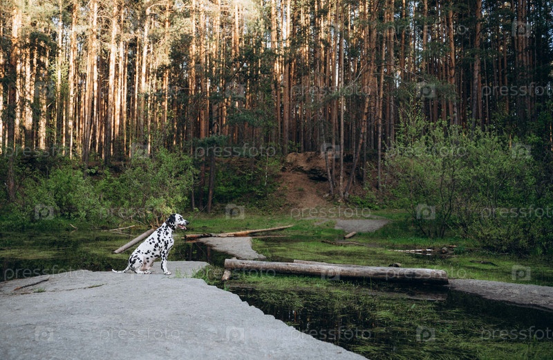 Лесной пейзаж с собакой