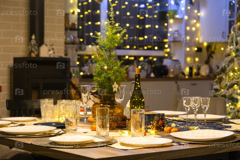 Праздничный интерьер дома украшен на Рождество и Новый год в стиле лофт с черной печью, камином, рождественской елкой. теплая комната-студия с установленным столом, горящей ёлкой, уют и отопление дома