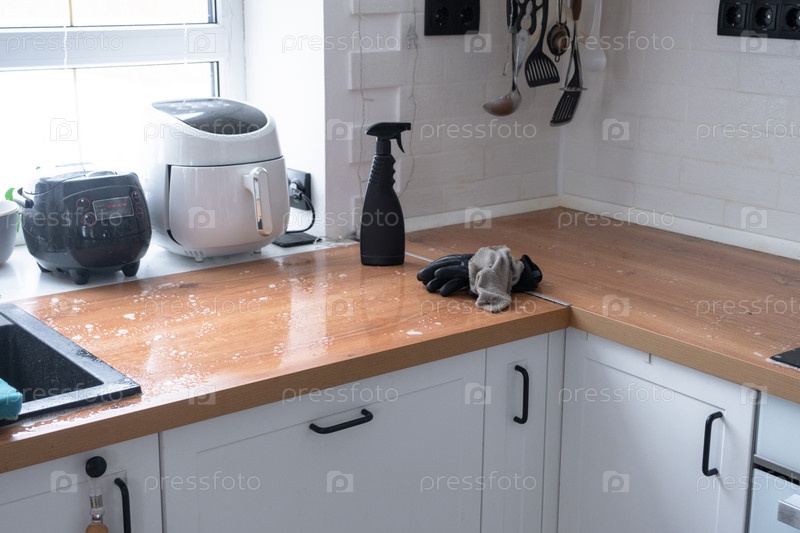 Общая кухонная чистка, очистка поверхностей и средства для удаления жира, беспорядок