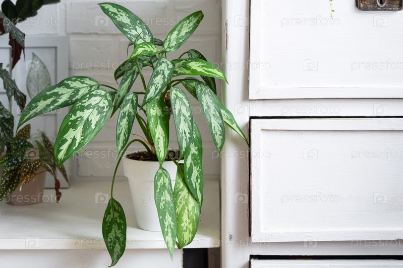 Aglaonema Maria в интерьере белого стиля лофт. выращивание декоративных внутренних растений в горшке