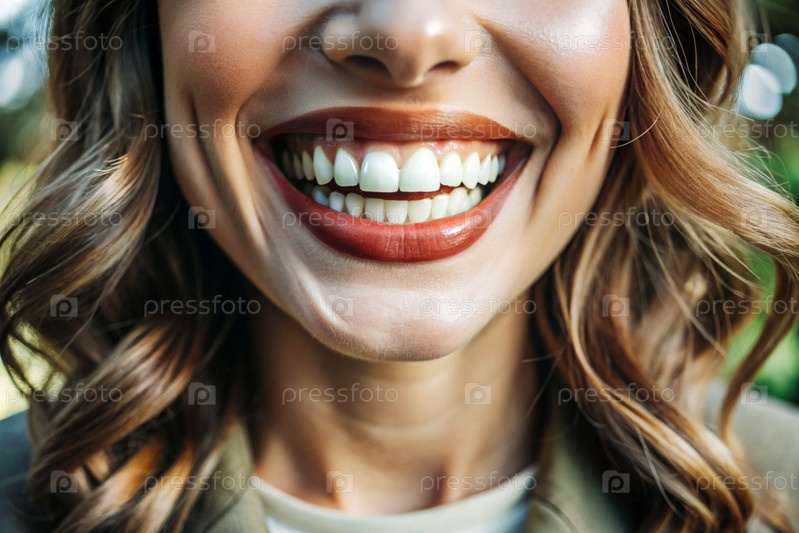Красивая, очаровательная, белоснежная женская улыбка. Женские зубы до и после отбеливания. Концепция стоматологических клиник