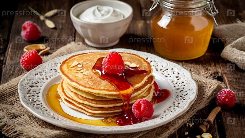 Вкусные блины с медом, чернилами, малиной и концепцией российского праздника Масленица