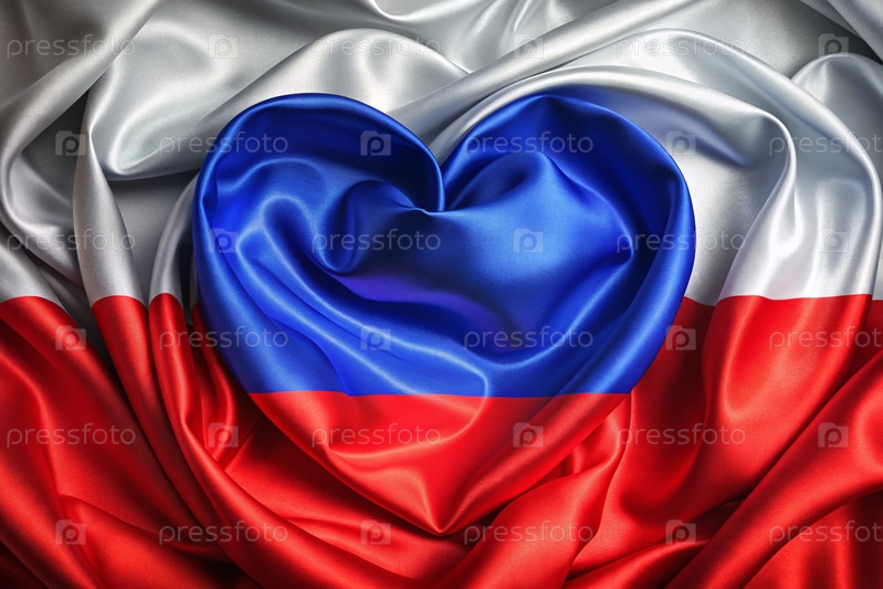 Россия. Москва. Национальный флаг Российской Федерации с сердцем. Русский триколор. День России отмечается 12 июня