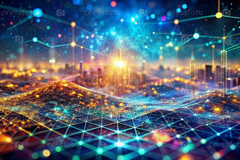 Высокотехнологичный материал. Близкий план клеточного рисунка с многоцветными огнями, создавая абстрактный и футуристический дизайн. Концепция развития и технологии будущего