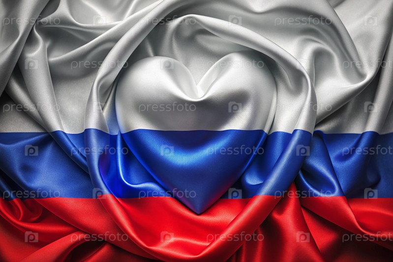 Россия. Москва. Национальный флаг Российской Федерации с сердцем. Русский триколор. День России отмечается 12 июня