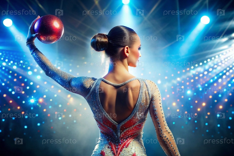 Ритмическая гимнастика Близкий план красивой гимнастки с мячом в центре внимания. олимпийский вид спорта