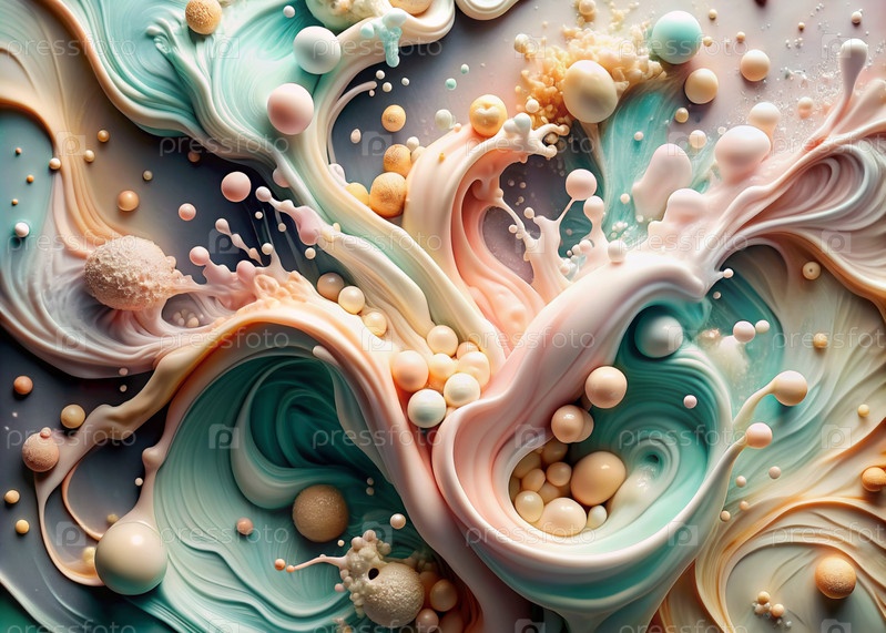 Абстрактный, мечтательный акварельный фон с волнами, полосами и жидкими потоками розового, синего и жемчуга