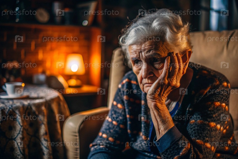 Минимализм.Портрет пожилой женщины, пенсионерки, концепция жизни пожилых людей, здоровье, одиночество и потеря памяти