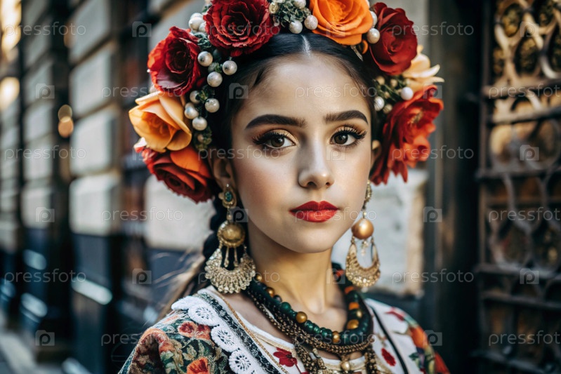 Испанская девушка в традиционном испанском национальном костюме. Перед быком. Бикоборство. Портрет символизирует традиции и культуру народа Испании