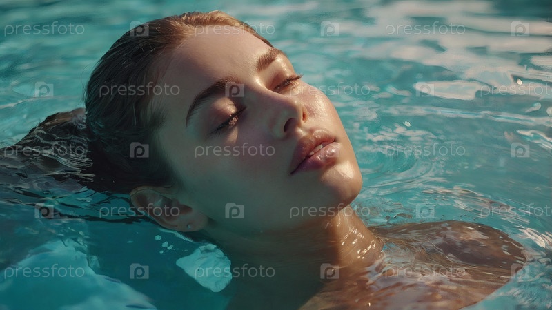 Близко. красивая молодая женщина в бирюзовом бассейне. концепция здорового образа жизни, отдых, расслабление, туризм, косметические спа-процедуры в курорте красота, гордость