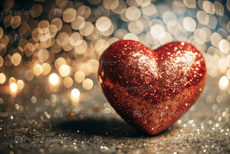 Знак на День святого Валентина. красное сердце с праздничными огнями по бокам в фоне. оформление билета-приглашения на вечеринку ко Дню Святого Валентина, место для копирования