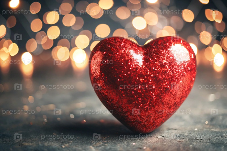 Знак на День святого Валентина. красное сердце с праздничными огнями по бокам в фоне. оформление билета-приглашения на вечеринку ко Дню Святого Валентина, место для копирования