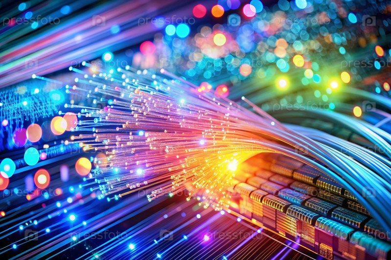 Высокотехнологичный материал. Закрытие линий и проводов цветными огнями, создание абстрактного дизайна. Концепция коммуникации, интернета и будущих технологий