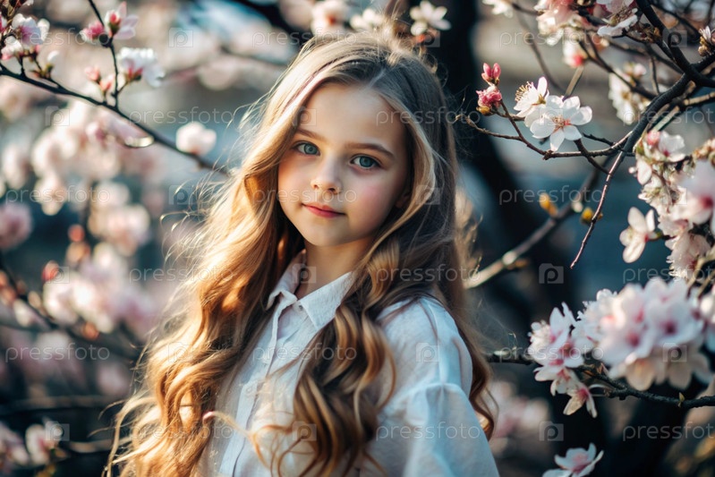 Весна.Портрет.Красавая молодая девушка в вишневом саду.Весенние цветения