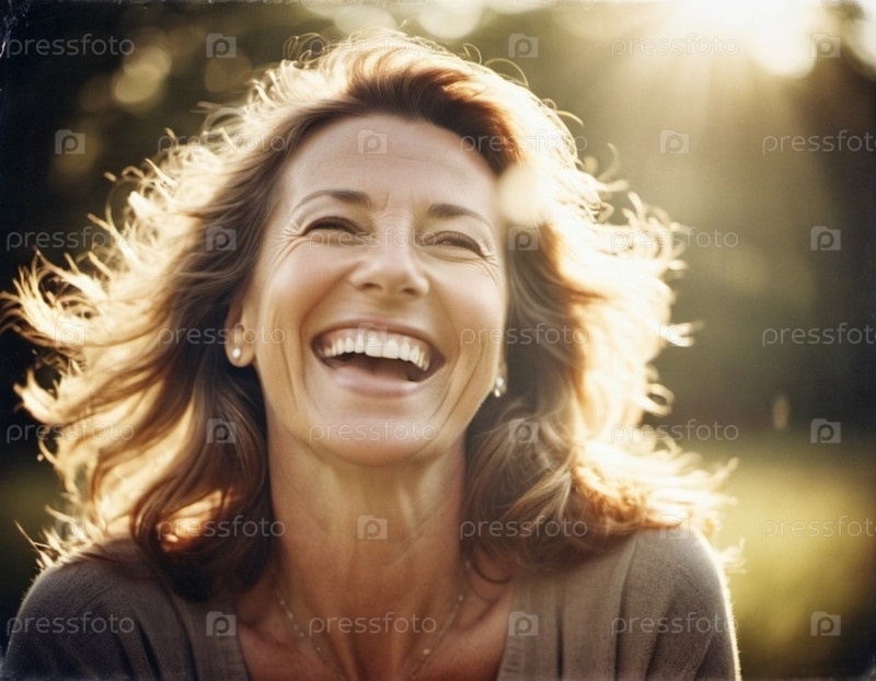 Портрет смеющейся красавицы коричневой женщины средних лет с прямыми волосами и белыми зубами Солнечная погода Радость от счастья Положительные эмоции Скандинавский тип лица