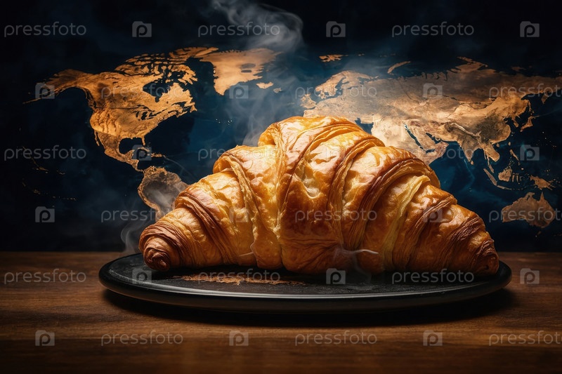 AI Generative Boiled Croissant Bakes on Map, Карта Всемирного дня продовольствия