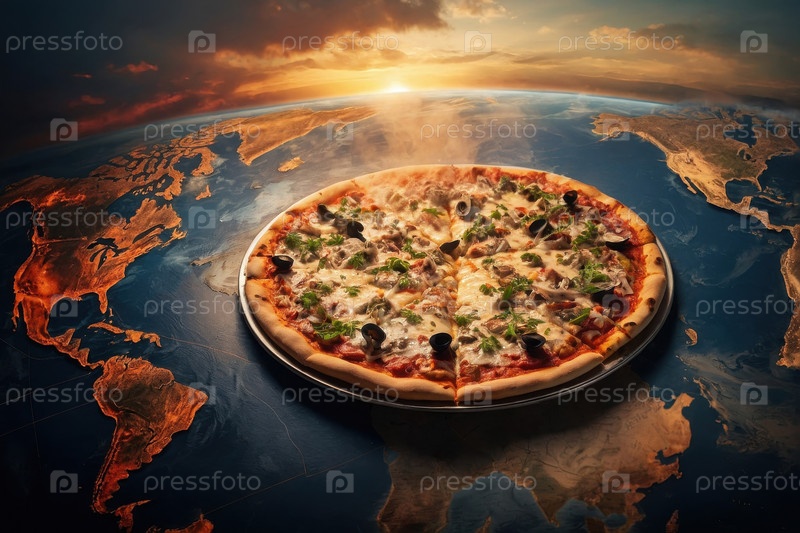 Водяная итальянская пицца с сыром на карте, карточка Всемирного дня продовольствия