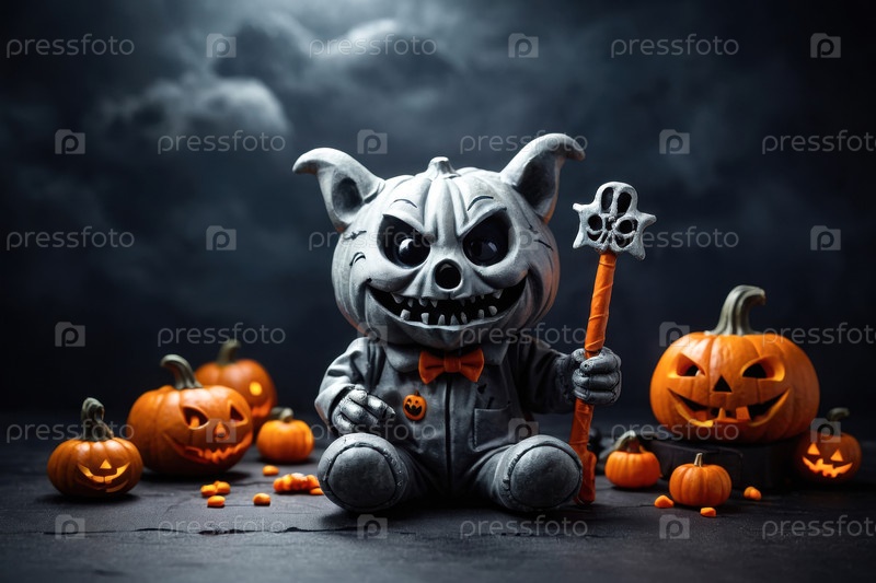 Странная сцена Хэллоуина с вырезанным тыквенным персонажем в искусственном интеллекте Генеративный костюм ведьмы
