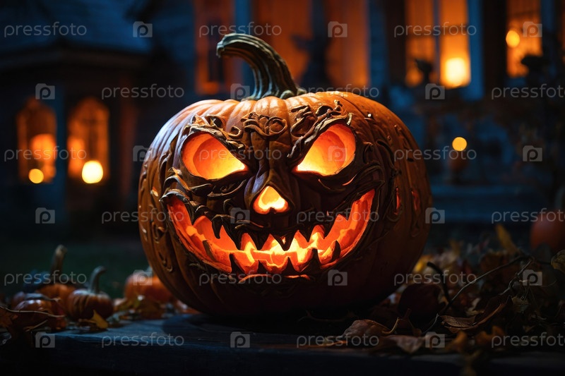 Тыквенный пугающий Джек-о-лантерн, атрибут осенних праздников Хэллоуин AI Generative