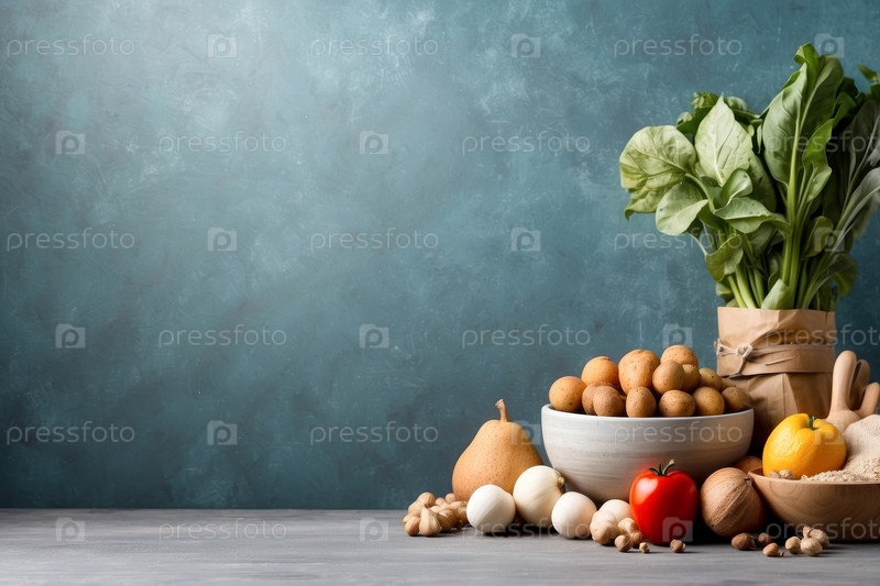 Фон плоская еда синий фон, открытка Всемирный день продовольствия AI Generative