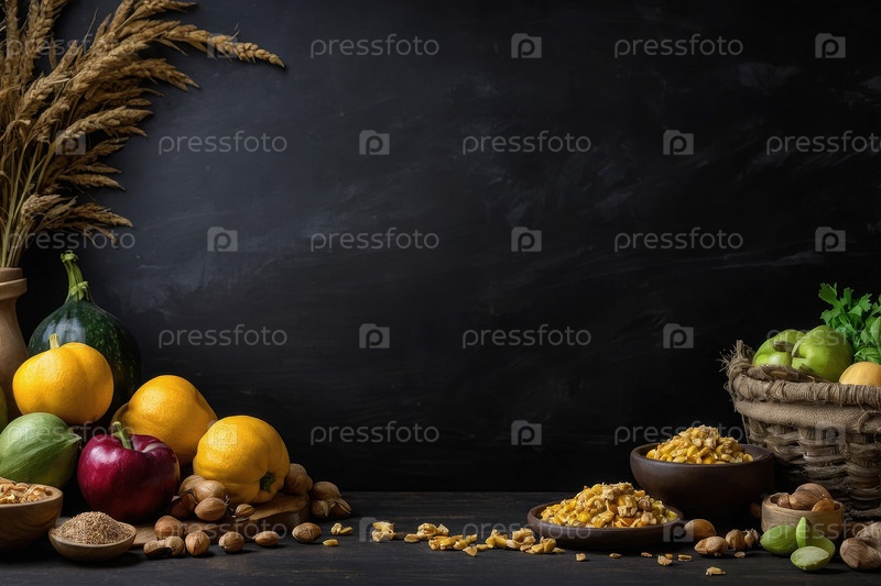 Фон плоская еда черный фон, открытка Всемирного дня продовольствия AI Generative